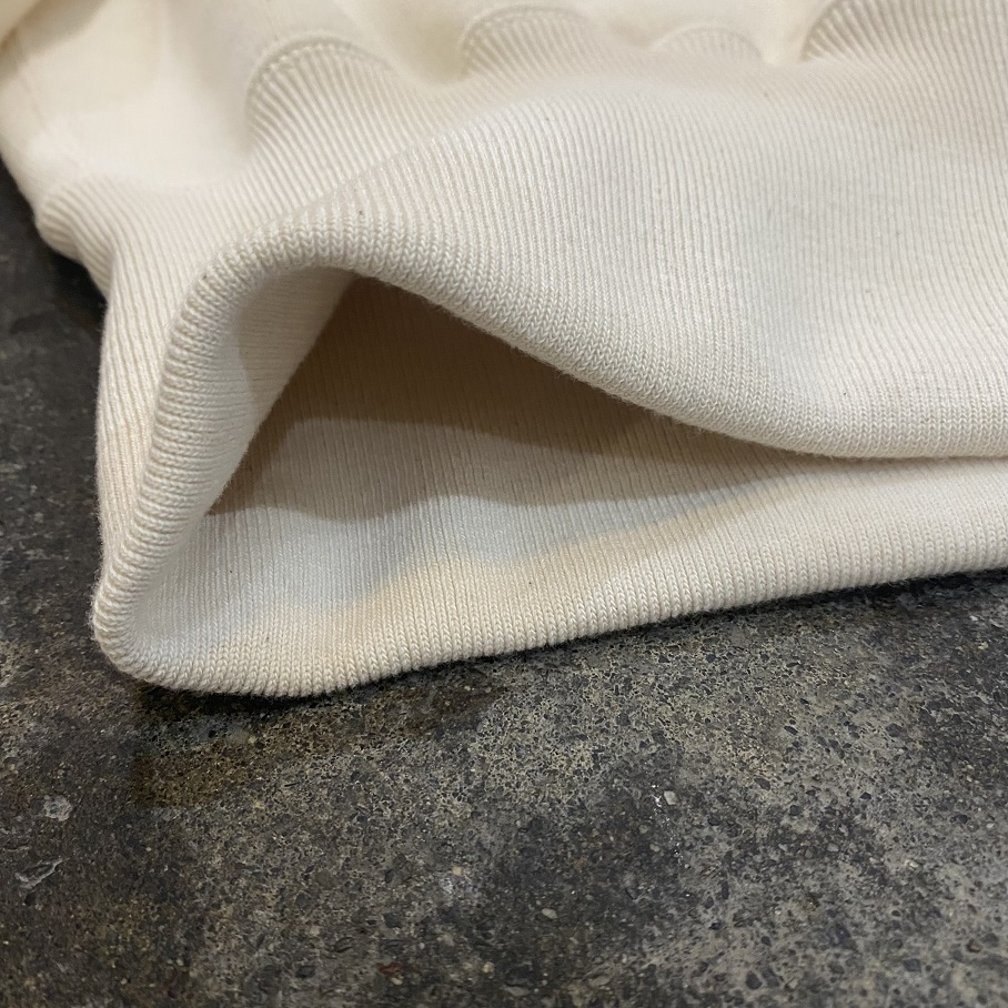 そして”EXTRA COTTON FLEECE”シリーズに採用されている生地感はもっちりとしていながら柔らかさのあるのも特徴です。生地に”撓り”を感じる・・・そんな生地感と言えます。