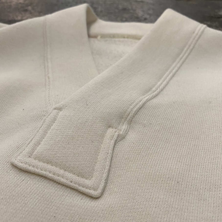 本日は毎シーズン大変ご好評をいただいているOLDE HOMESTEADERより”EXTRA COTTON FLEECE”シリーズの”Y NECK”のECRUが入荷致しましたので早速ですがご紹介をさせていただきます。