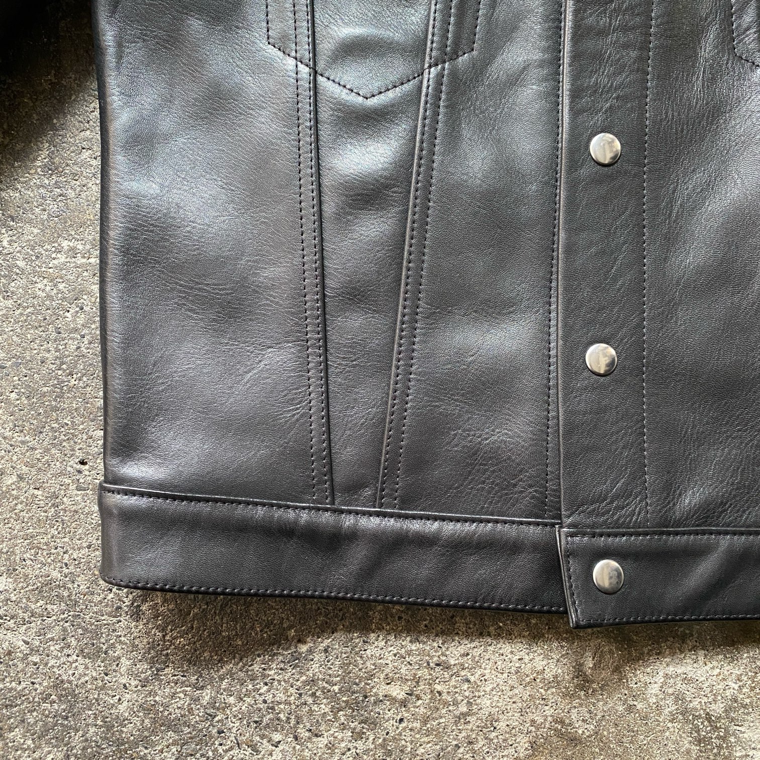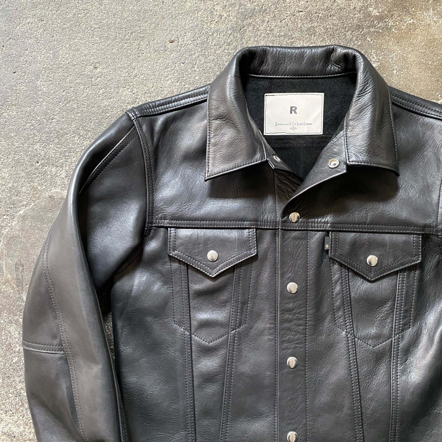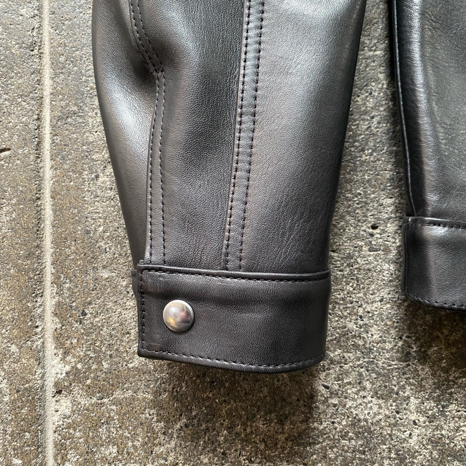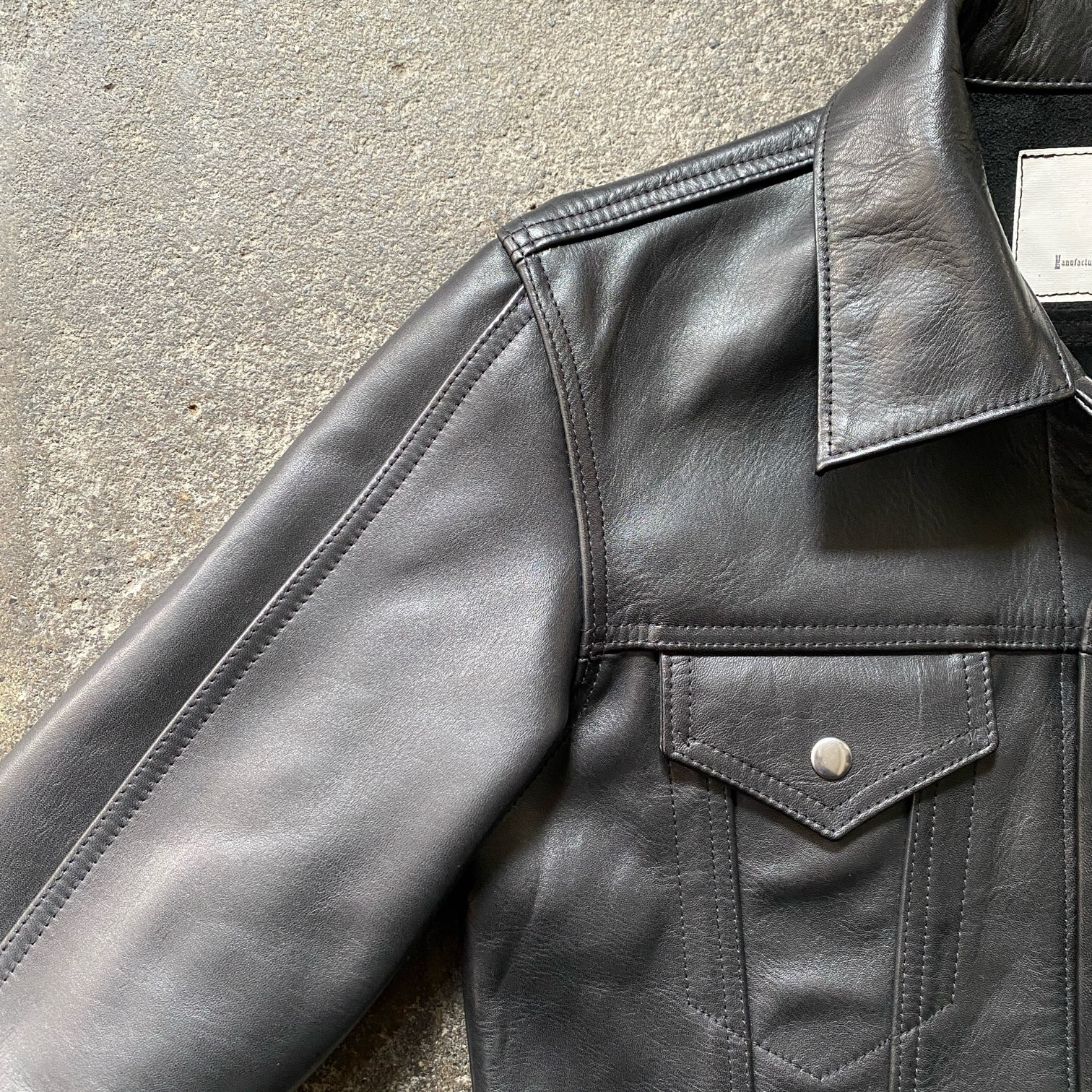新品の状態ですと張りのあるレザーの質感ですが、着込むほどに馴染む過程をぜひ楽しんで頂きたい・・・そんな一着となります。