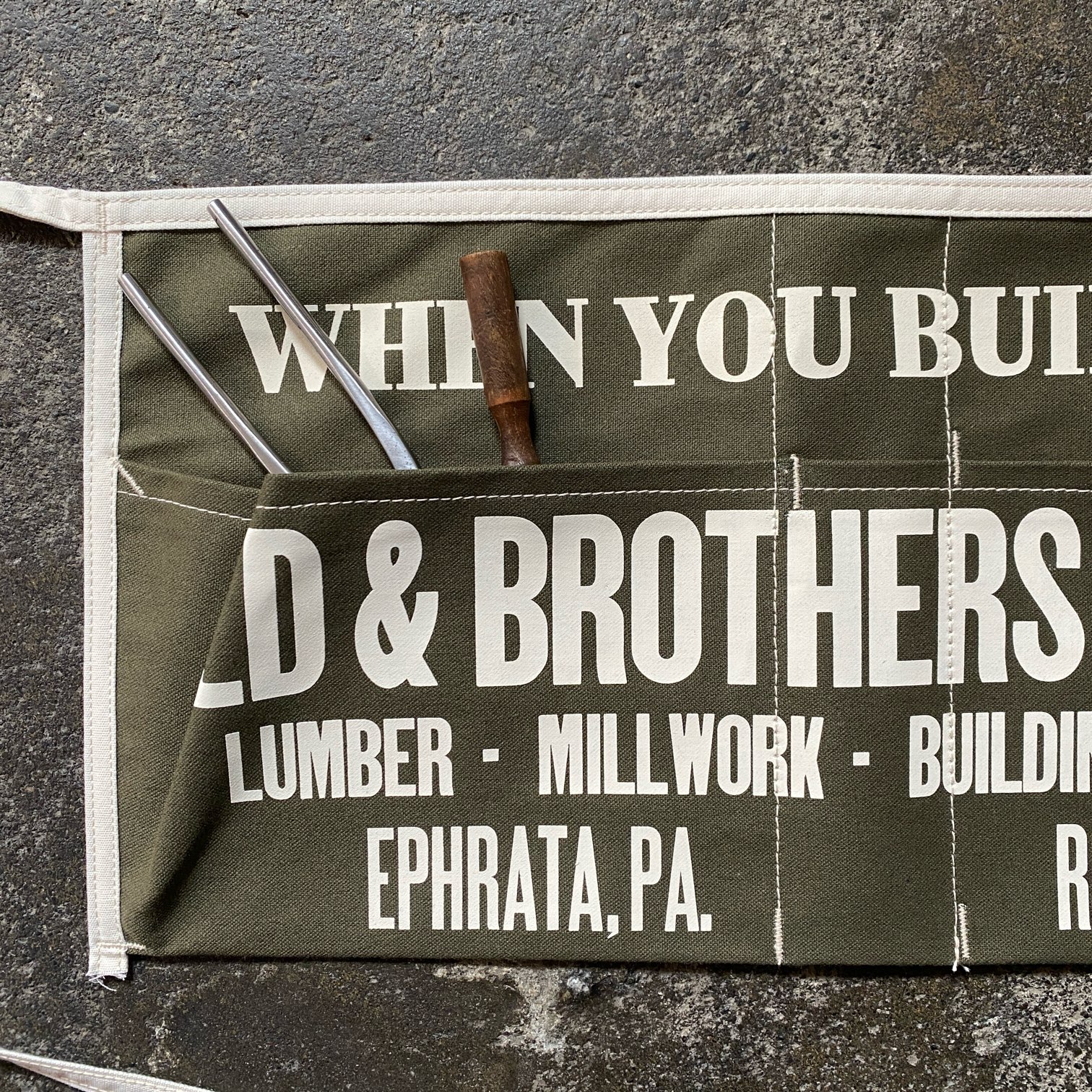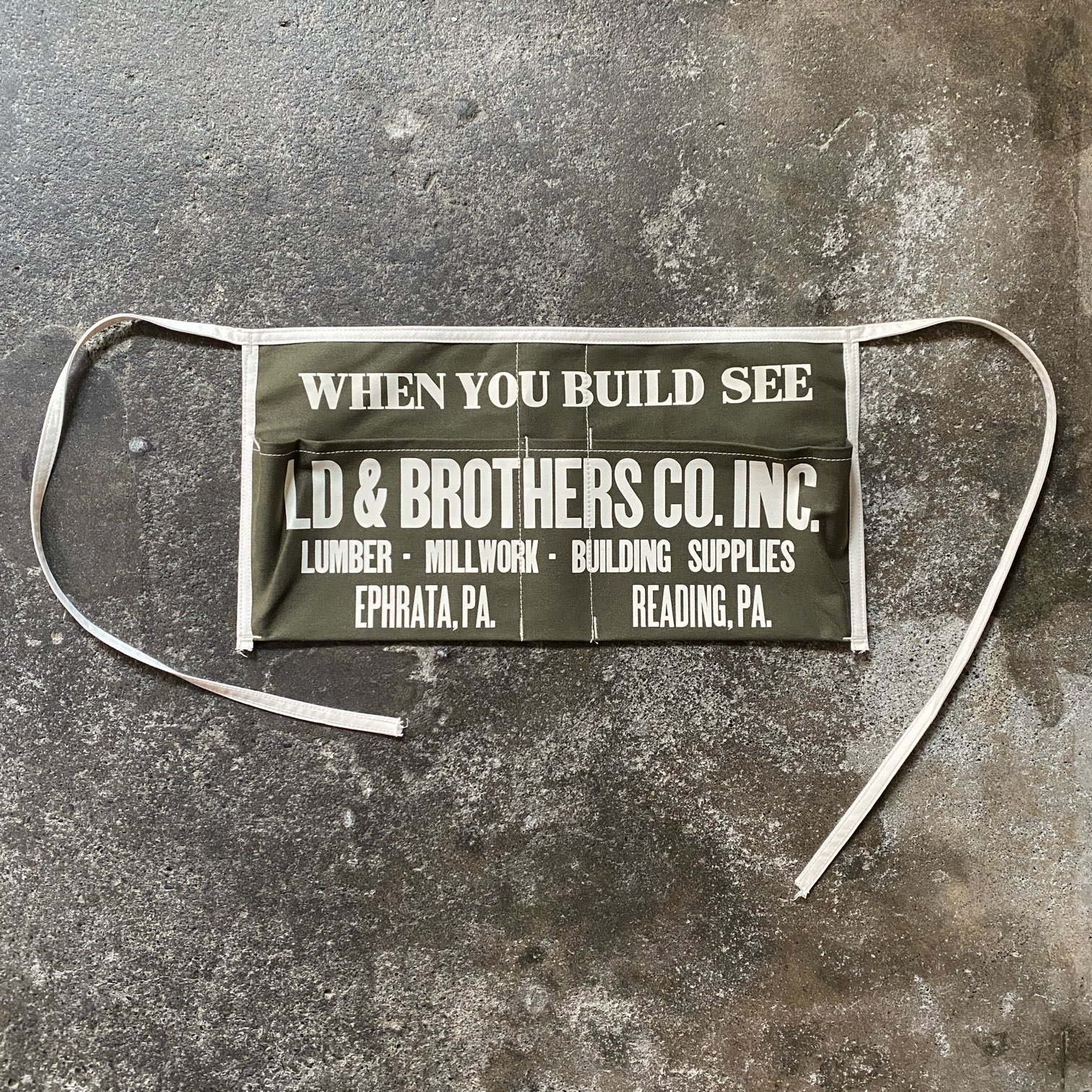 ネイルエプロンとは、本来は大工や建築現場で釘(ネイル)やビスなどの小さな資材を持ち運ぶための作業用エプロン。腰回りのポケットに釘や工具を入れて作業する、アメリカのカーペンターには馴染み深いワークアイテムの一つです。