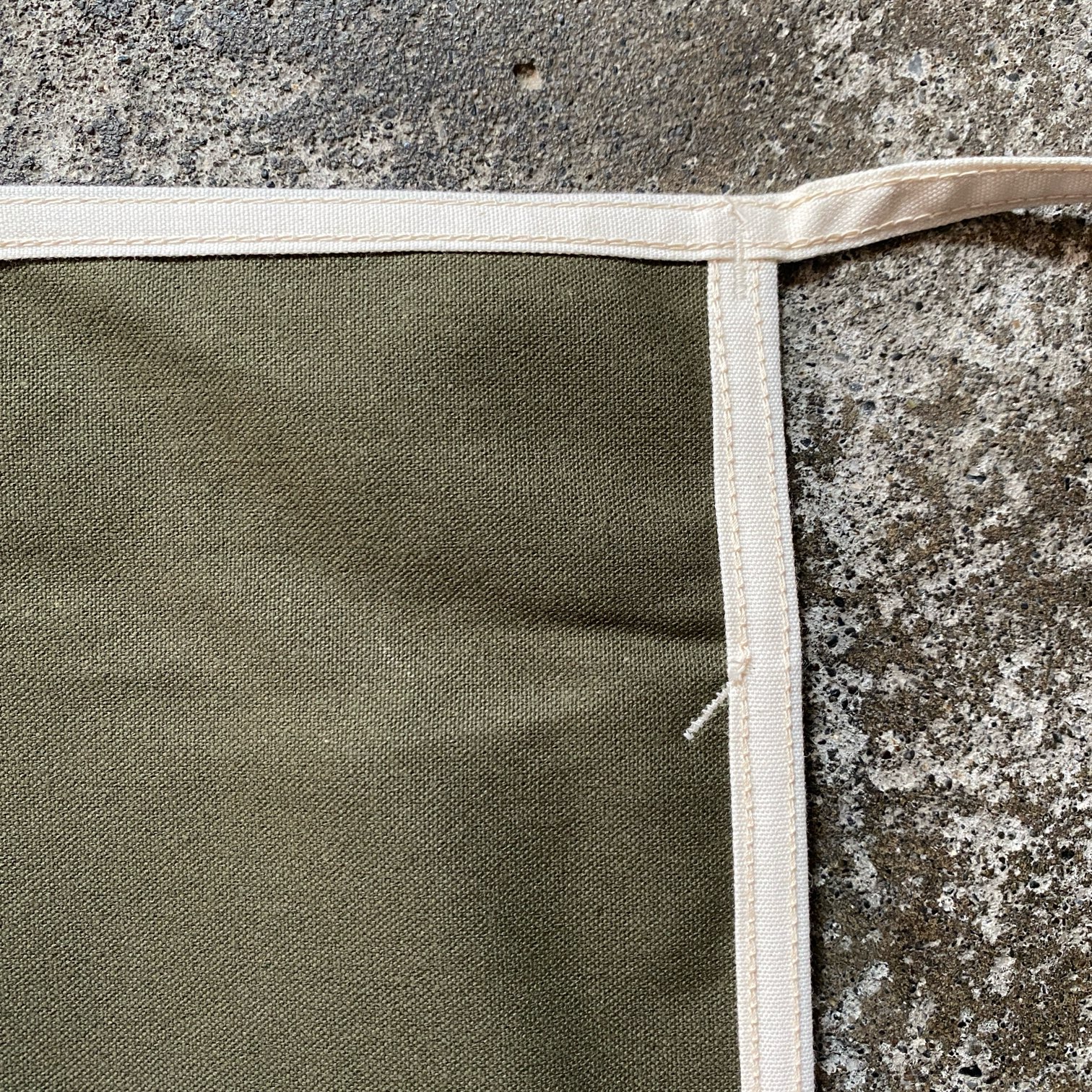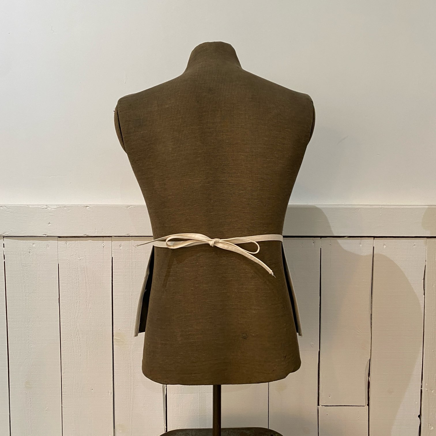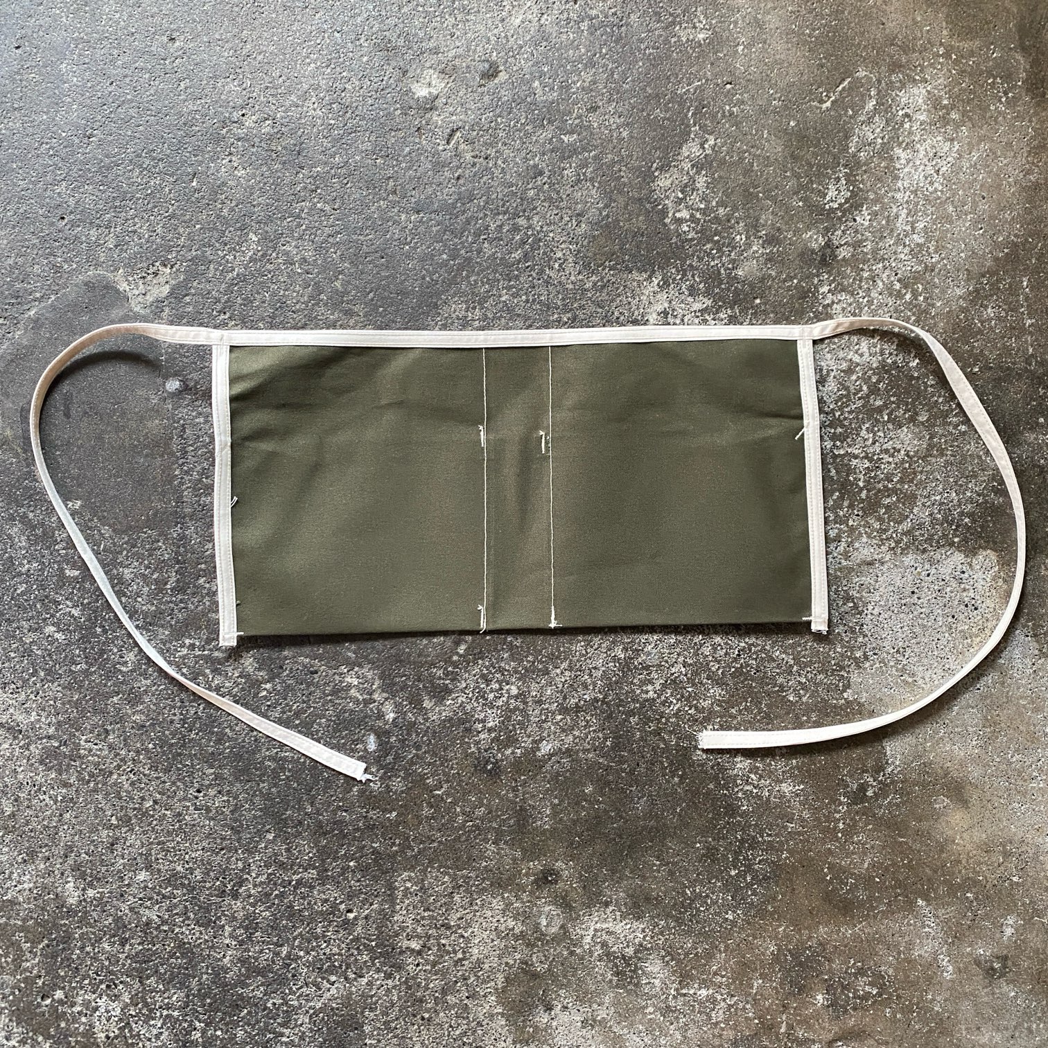 素材にはライトウェイトのコットンキャンバスを使用。軽やかな生地感にすることで、エプロンとしてだけでなく日常のスタイリングにも取り入れやすい仕様としました。また、縫製にはチェーンステッチを取り入れ、ポケットや負荷のかかる部分にはカンドメを施すなど、ヴィンテージのワークウェアに見られるディテールも随所に反映しています。