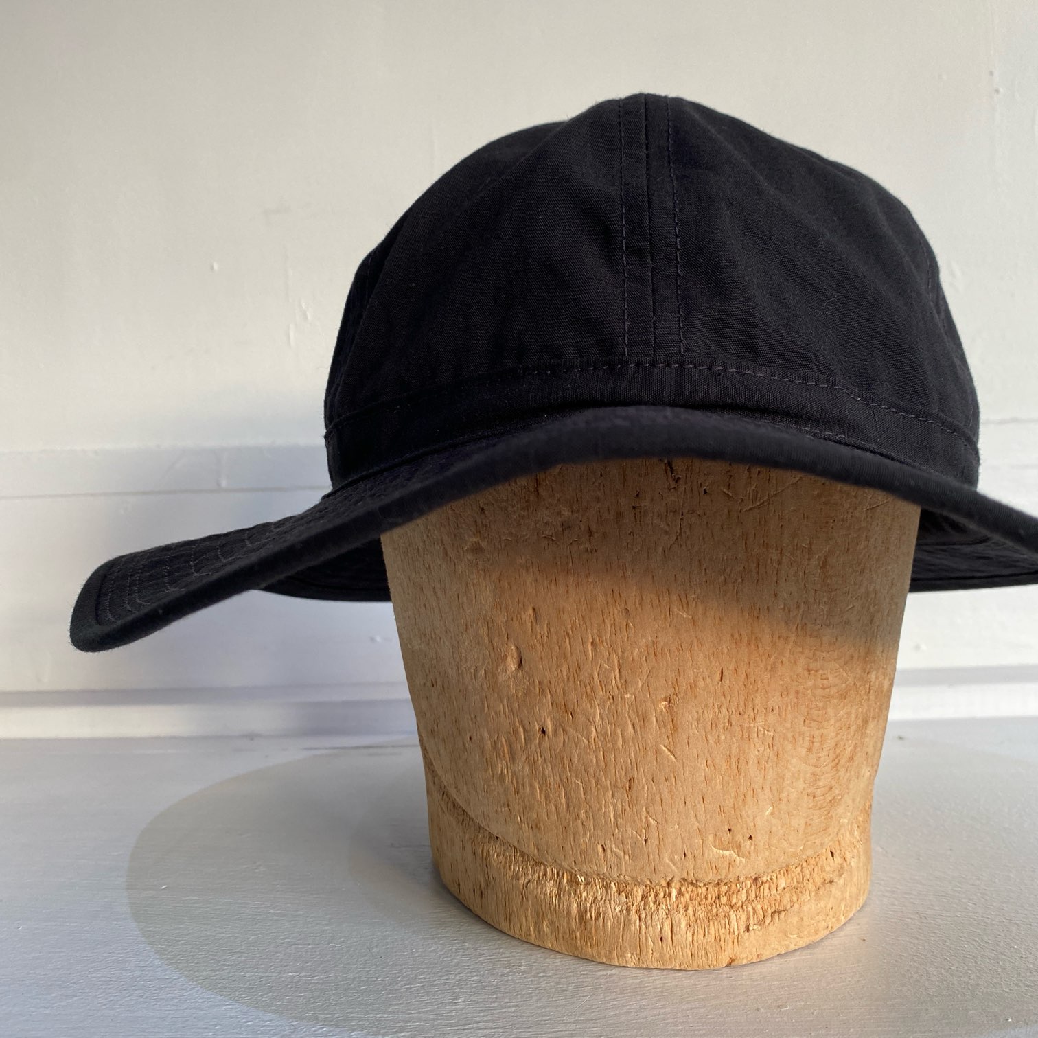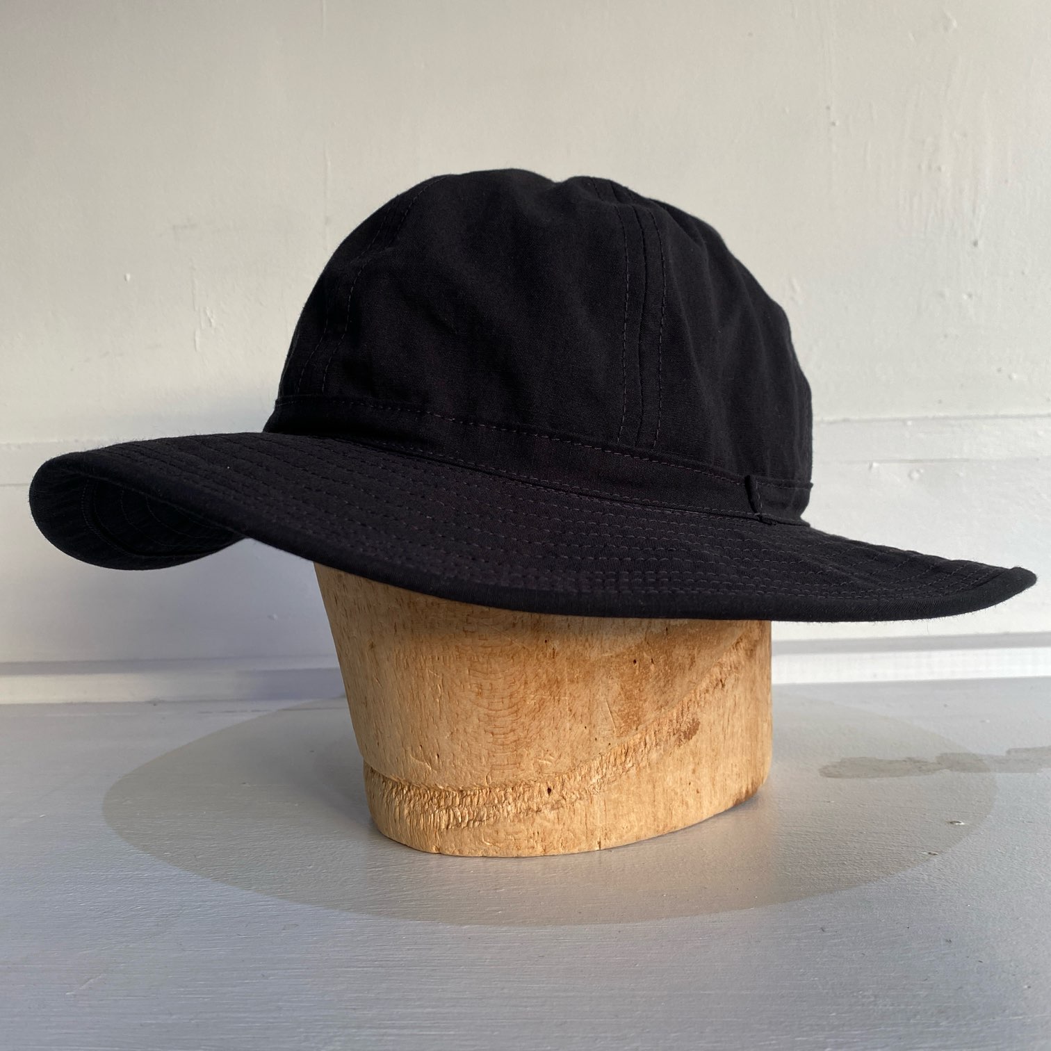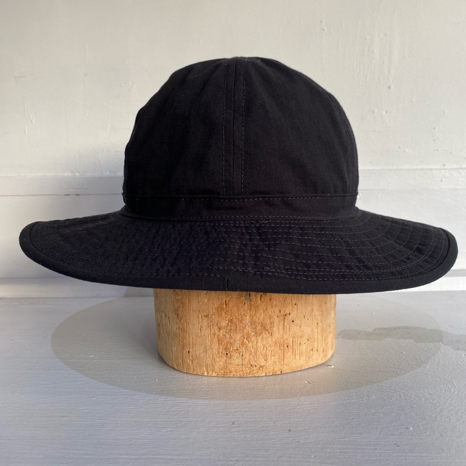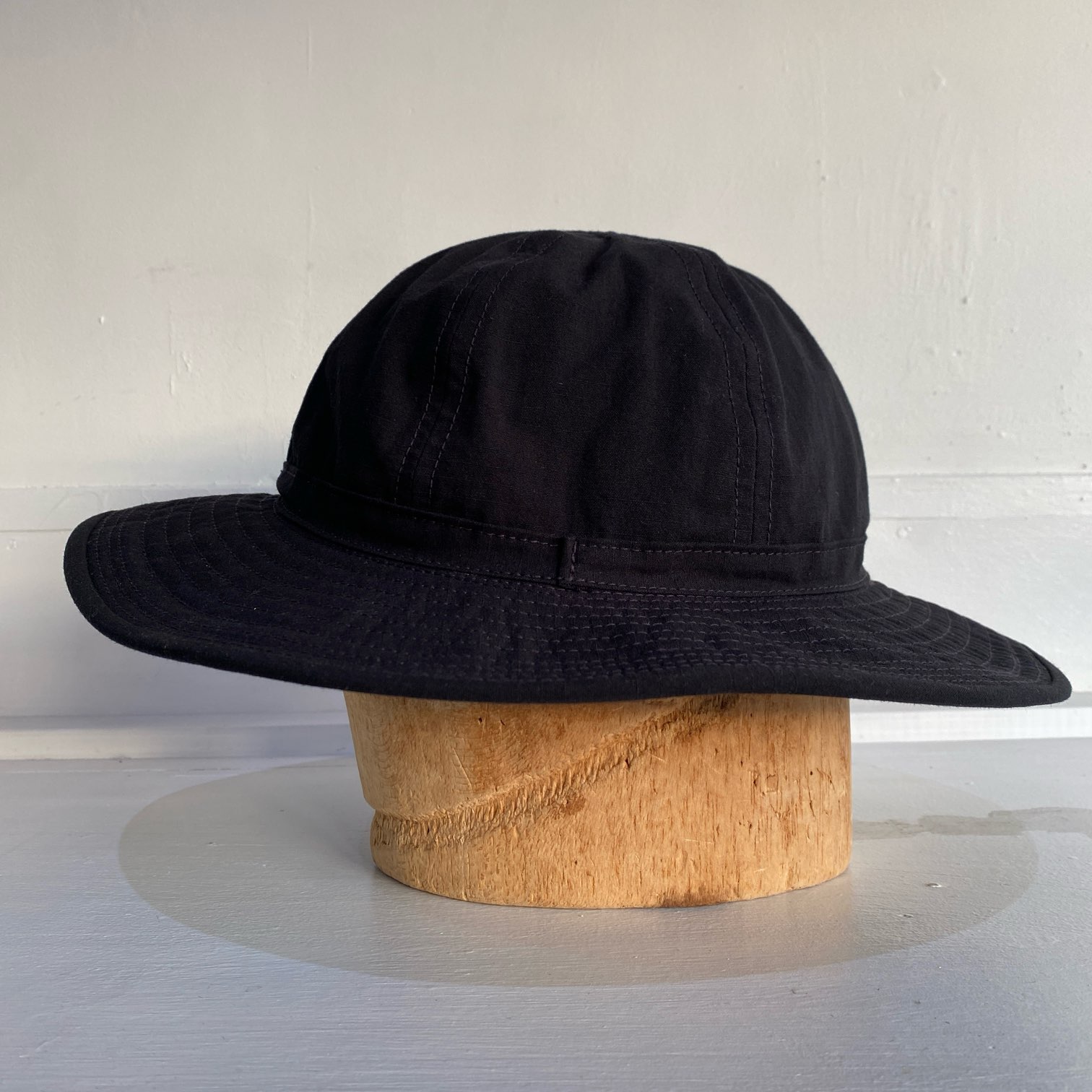1940年代にU.S.ARMYで採用されていたFATIGUE HATをモチーフにコットン50%・ナイロン50%のブラックリップストップファブリックを使用した当店オリジナルのファティーグハットとなります。