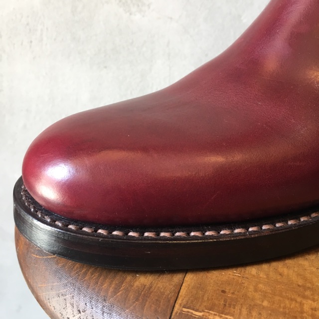 使用したレザーはクロムエクセルのバーガンディカラーで型はCLINCHオリジナルのクラシックナローの木型が使われております。