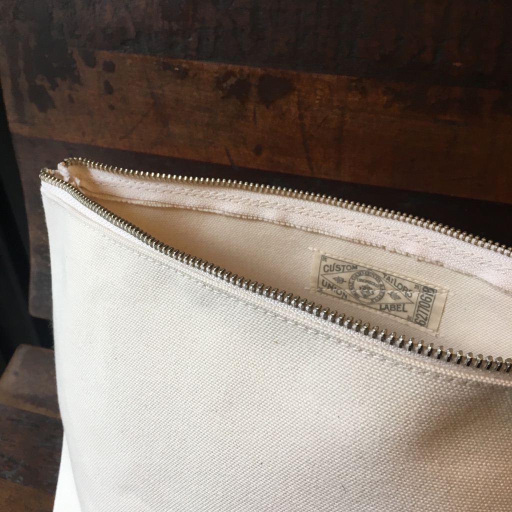 LABOR DAYに別注したマチ付のポーチの店頭分を本日から店頭にて販売しております。