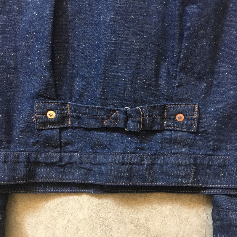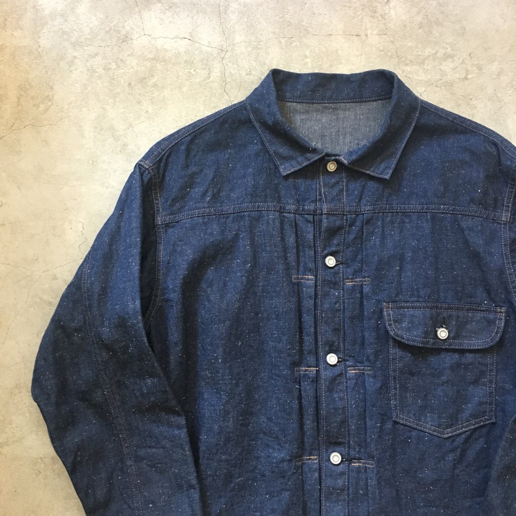 当店のオリジナルアイテムとして1900年代のデニムジャケットをモチーフにライトオンスブラウンデニムを使用したデニムジャケットも大変ご好評をいただいておりましたが、次回、その後継型となるライトオンスブルーデニムを使用したモデルを現在企画・生産しております。