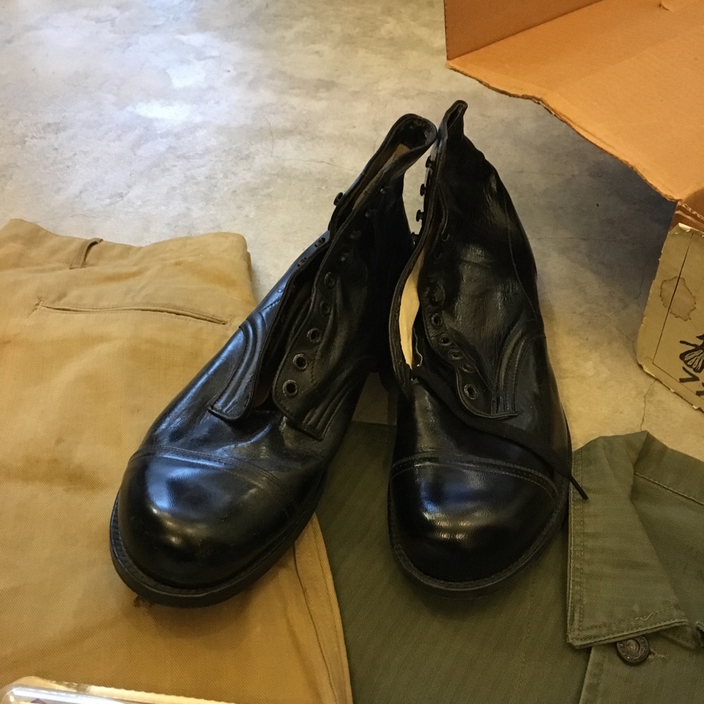 シューズ類はNEW OLD STOCK(DEAD STOCK)の物です。カンガルーレザーのドレスブーツはサイズも大き目で最近では見かけなくなってきたアイテムではないかと思います。