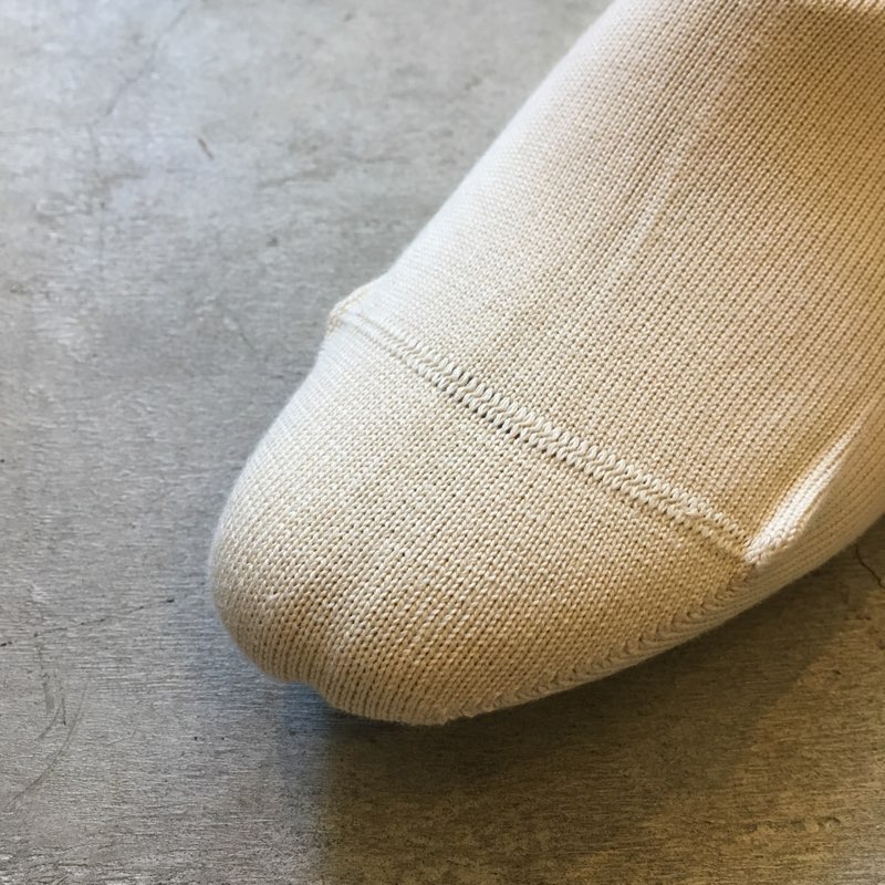 コットン100%でありながらゴワゴワとせず、しなやかな質感、つま先のリンキングの丁寧さなどは他ではなかなか出会うことの難しい物です。