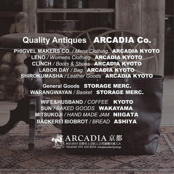 当店でお取り扱いさせていただいております”LABOR DAY ”のデザイナーである宮内様ご夫婦が京都で営まれている”ARCADIA Co.”が昨年に引き続き3日間のみ東京・恵比寿にて限定オープンいたします。